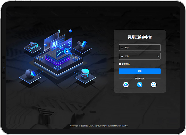 This middle platform serves as a technical middle platform for robot application technology support and service sharing - providing module functions such as the IoT, AI intelligent computing, digital twin space, and unified authority. It is the core support of the AXS ( the AnXun System) and can integrate various types of robots and third-party systems.